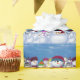 Cute and whimsical snowmen are chilling together as they keep each other nice and cold on a winter day. All the snowmen are wearing colourful and creative hats and scarves. Based on an original art piece by © One Artsy Momma.
