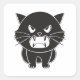 Cute angry black cat hissing. Furious black kitten with open mouth showing sharp teeth.