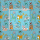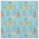 This cute fabric features a pattern of cute animal marionette puppets against a light blue background. There's a cat marionette, a dog marionette, a goat marionette, a bird marionette, a rabbit marionette and an elephant marionette.