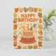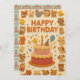 This joyful birthday card design features a colourful two-tier cake topped with a candle, star wand, and party hat, surrounded by adorable paper-cut style animals including foxes, bears, dogs, cats, birds, and more. Confetti, balloons, and cheerful details fill the background, creating a festive and heartwarming scene. Perfect for kids or animal lovers, this playful card adds charm to any birthday celebration.