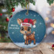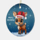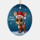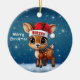 Cute animal reindeer character, baby deer with antlers and personalizable Santa hat with festive blue snowy backdrop. Unique winter wildlife graphic with a light snow. Round ceramic ornament, with customizable Merry Christmas written in white. for decorating your holiday tree or as a thoughtful gift, this whimsical woodland doe decor makes a cherished keepsake for years to come. Customize by changing the text, the font, the font color, or remove the text. You can even transfer this cartoon fawn illustration onto other products. Enjoy this design your way! 🎄🦌