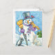 Cute Animals Building a Snowman for Christmas Holiday Postcard