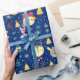 The adorable animals bring a joyful and lighthearted feel, while the crescent moons add a magical, wintry touch. The snowflakes and Christmas trees are beautifully detailed, creating a festive scene that pops against the calming blue backdrop. Together, these elements create a harmonious design that feels both fresh and timeless.