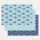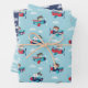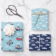 Cute animals in aeroplanes with 2 matching cloud patterns on blue