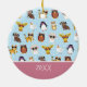 Give your little girl a custom holiday tree ornament with her name, year, and cute animals in sunglasses! Animals are in a pattern in front of polka dots and include a tiger, dog, lamb, owl, giraffe, penguin, hamster, and chicken.