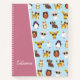 Give your little girl a custom notebook with her name and cute animals in sunglasses! Animals are in a pattern in front of polka dots and include a tiger, dog, lamb, owl, giraffe, penguin, hamster, and chicken. This would also make an adorable notebook for a little boy who loves animals!