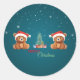 Cute animals winter Bear Santa Christmas tree Classic Round Sticker