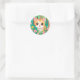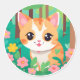 cute anime cat with flowers classic round sticker