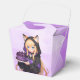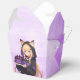 Cute personalized birthday thank you favor box for a girl's birthday party. A sweet anime dragon holding a purple and black birthday gothic cupcake on the front and an anime girl in a fox ears hoodie on the back. A sweet thank you gift for guests.