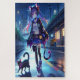 This jigsaw puzzle is ready to be hung on any wall that is ready to make a statement. Cute anime gamer girl walking down a street with her favourite cat.