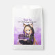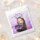 Cute personalized birthday thank you favor bag for a girl's birthday party. A sweet anime girl in a fox ears hoodie holding a purple and black birthday cake. Fill the bag with candy and treats to make cute thank you favor gifts for guests.