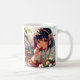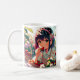 Personalised coffee cup. A cute anime girl with black hair and a pink headband with flowers eating fresh picked strawberries on a summer day. Cute for any girl who loves anime!