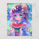 Cute Anime Girl Eating Watermelon on a Summer Day Postcard
