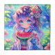 Cute Anime Girl Eating Watermelon on a Summer Day Tile
