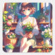Cute Anime Girl holding a Plant Square Sticker