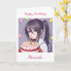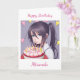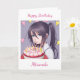 Pink and black Anime girl holding a birthday cake personalised Birthday card. Ai generated artwork. Cute card for a pre teen or teenage girl who likes anime. generativecontent