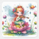Cute Anime Girl with Violin on Lotus Flower Square Sticker