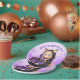 Cute personalized birthday paper plates for a girl's birthday party. A sweet anime girl in a fox ears hoodie holding a purple and black birthday cake.