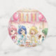 Pretty pink and green anime girl's birthday ice cream party personalized confetti! Adorable girls sitting around a table eating ice and pretty pastel colors.