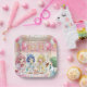 Pretty pink and green anime girl's birthday ice cream party personalized paper plates! Adorable girls sitting around a table eating ice and pretty pastel colors.