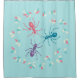 Cute ants shower curtain in pastel tones featuring a vector illustration of three ants in blue, purple and pink colour surrounded by colourful leaves over light blue background. this pretty and fun design will appeal to a person who loves these amazing insects, wildlife and nature.