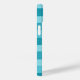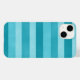 A modern and cute iPhone 14 case with a stripes pattern in shades of turquoise, teal, aqua, and mint green.