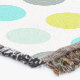 Cute pattern of aqua blue, mint, yellow and grey polka dots.