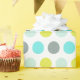 Cute pattern of aqua blue, mint, yellow and grey polka dots.