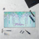 Cute Aqua Turquoise Unicorn Glitter Drips monogram Desk Mat