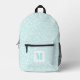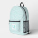 Cute Aqua & White Polkadots Monogrammed Kids Printed Backpack