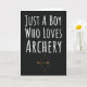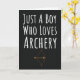 **Keywords:** Cute Archery Cards, For Baby Boys Kids, Just A Boy Who Loves Archery, archery gift, themed, unique, related, lover, sports, Christmas, Xmas, Halloween, Thanksgiving, ornament, presents, stocking stuffer, White Elephant Gifts, novelty items, birthday, for him, boys, son, grandson, kids, male, teen boys, teenagers, baby boy, back to school, archer, coach.