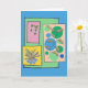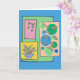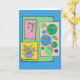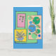 This art greeting card is decorated with three cute doodles of plants, each inside their own border. The main colours are green and blue. Inside you can add your own words (or leave it blank). Use the card to send your own message, it would be very suitable for a gardener or florist. The artwork is original mixed media drawings, and only available from The Art of Being Beth.