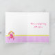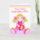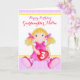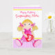 Whimsical girls rag doll painted birthday greetings card, ideal for a little girls birthday. Cute pink, red, purple, yellow and white colours. Personalise with your own goddaughters name and age. Original watercolor painting and design by Sarah Trett.