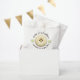 The expression "cute as a button" is taken literally on this fun baby shower or Sip and See favour bag. A round stitched border frames the image with a large button in the centre highlighting the theme. Add a personalised message below. Perfect for the honoree who loves to sew. Can also be used for a Sip and See. Versatile enough to use for a boy, girl or even multiples! Available with matching products.