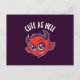 Vector cartoon illustration of a devilishly cute little devil with big eyes with Cute as Hell text.