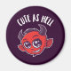 Vector cartoon illustration of a devilishly cute little devil with big eyes with Cute as Hell text.