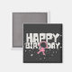 Custom magnet featuring pink astronaut in space with stars and "happy birthday" in modern heavy comic typography.