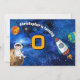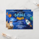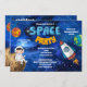 If you are hosting an outer space theme birthday party for your son this illustration of a cute cartoon astronaut sitting on a meteor surrounded by satellites; a rocket ship and a galaxy filled with sparkling stars is ideal. The templates may be personalised to suit your requirements and the age of the birthday boy added. This design is ideal for kids or adults hosting an alien and galaxy themed celebration.