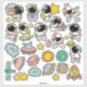 Fun cartoon astronaut, rockets, planets and UFO space stickers.