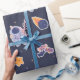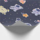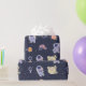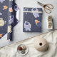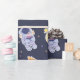 A soft, cute pattern with astronauts, smiling stars, and tiny planets floating in a deep-space night sky.