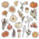 Hand drawn set of cute autumn pictures: pumpkin, mushrooms, leaves, flowers etc.