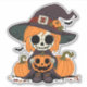 My autumn witch with skeletal face, pumpkins and a jack-'o-lantern.
