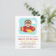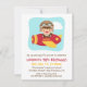 A colourful and fun invitation with a cute boy in aviator outfit of big goggles and hat waving his hand as he flies a little red and yellow aeroplane among the clouds. On the reverse is the slanted blue and white stripes. Personalise easily with your party details for that aeroplane themed birthday party!