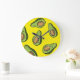 Add a fresh and fun touch to your walls with this adorable avocado print wall clock. Featuring a vibrant and whimsical pattern of sliced avocados on a cheerful yellow background, this decorative timepiece is the perfect blend of modern art and playful functionality. Designed for foodies, health enthusiasts, and lovers of 'kawaii' aesthetics, it makes a stunning focal point in any sunny kitchen, breakfast nook, or children's nursery. Crafted with high-quality printing, this unique clock not only keeps you on schedule but also brings a pop of colour and personality to your home. It's a fantastic housewarming gift for vegan friends or a delightful surprise for anyone who loves avocado-themed decor.