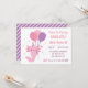 A cute axolotl with a party hat is holding on to balloons. Time to Party Axolotl! An adorable axolotl design theme birthday party invitation in a girly color palette of pink and purple. Perfect for girls birthday party! Personalize easily with your party details.