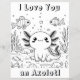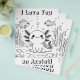 Cute axolotl colouring page for kids, teens or adults. I love you an axolotl.