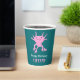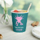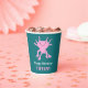 Add your own custom message to create personalized party supplies for birthday parties and more. These paper cups feature my cute cartoon style illustration of an axolotl salamander in bright pink set against a teal colored backed with your text in white and pink lettering below. The graphic and text appear on both sides of the cup. These adorable paper cups are perfect for kids (of any age!) who love axolotls and other unusual animals.