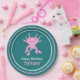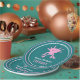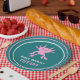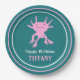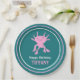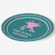 Add your own custom message to create personalized party supplies for birthday parties and more. These paper plates feature my cute cartoon style illustration of an axolotl salamander in bright pink set against a teal colored backed with your text in white and pink lettering below. Coordinating pink and white stripes decorate the rim. These adorable paper plates are perfect for kids (of any age!) who love axolotls and other unusual animals.