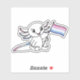 This endearing axolotl proudly waves its Bigender Pride flag. Its bright pink, light pink, purple, white, light blue, and deep cerulean blue colours represent good relationships, unique identities and lived experiences, and being true to yourself. Let this sweet little critter's big eyes and contagious smile cheer you on as you proudly celebrate your authentic self at Pride and all year long!