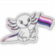 This endearing axolotl proudly waves their Genderfluid Pride flag. Its pink, white, purple, black, and blue stripes represent the rich spectrum of gender experiences. Let this sweet little critter's big eyes and contagious smile cheer you on as you proudly celebrate your authentic self at Pride and all year long!